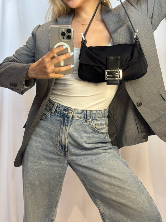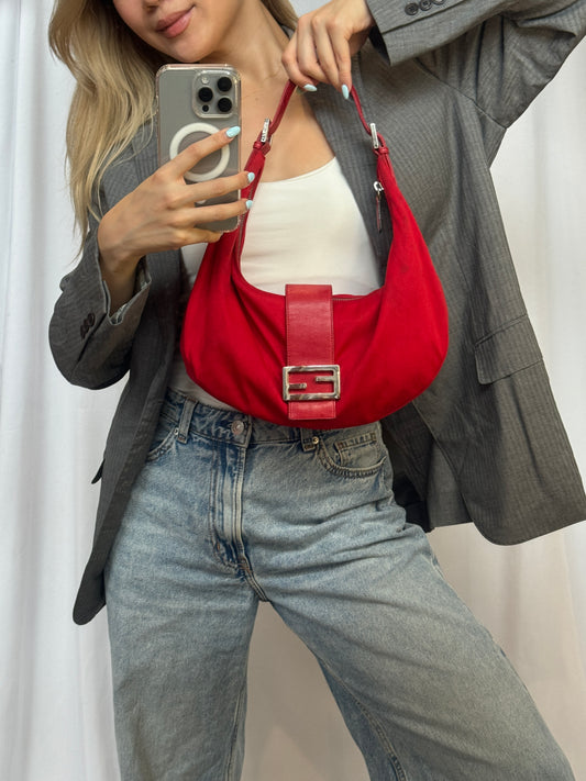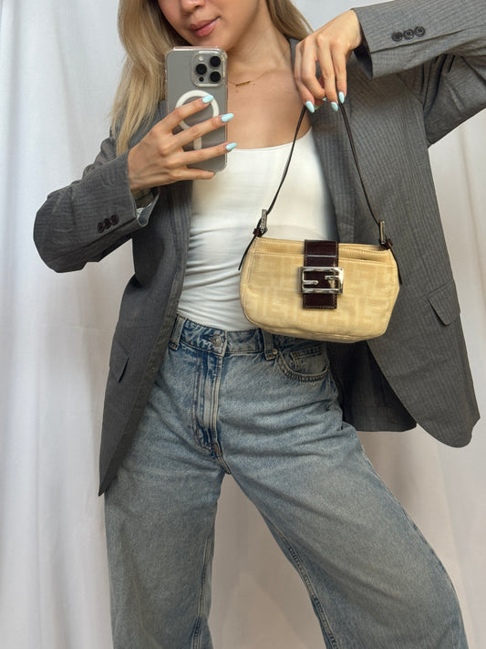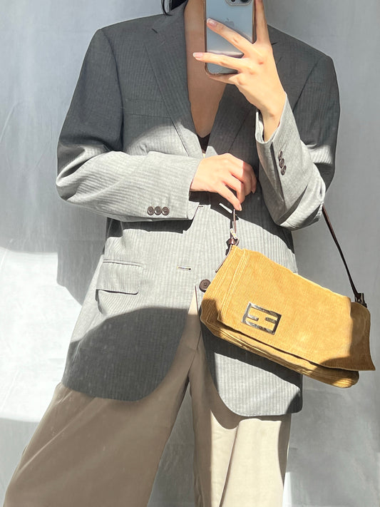 Fendi Vintage FF Corduroy Baguette Shoulder Bag