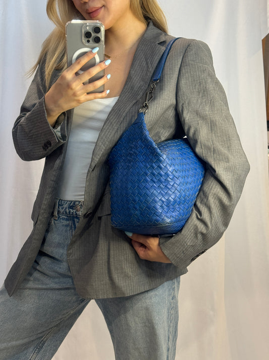 Bottega Veneta Blue Intrecciato Zip Hobo Shoulder Bag