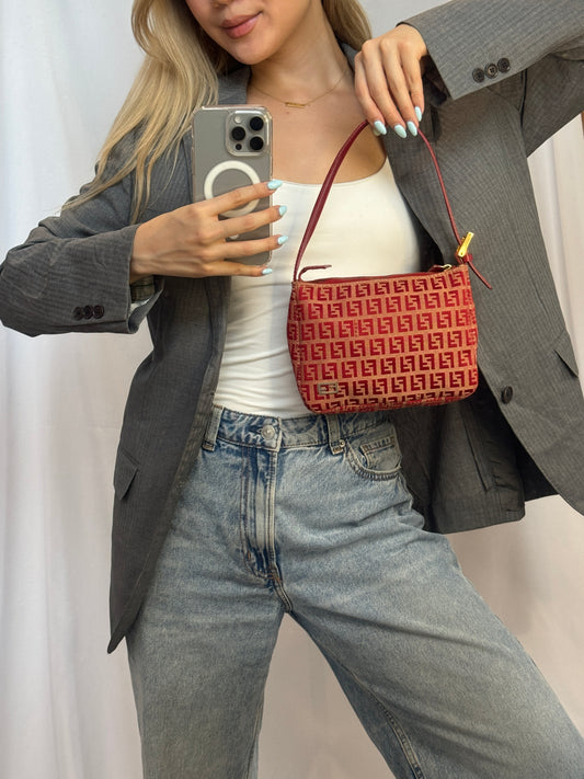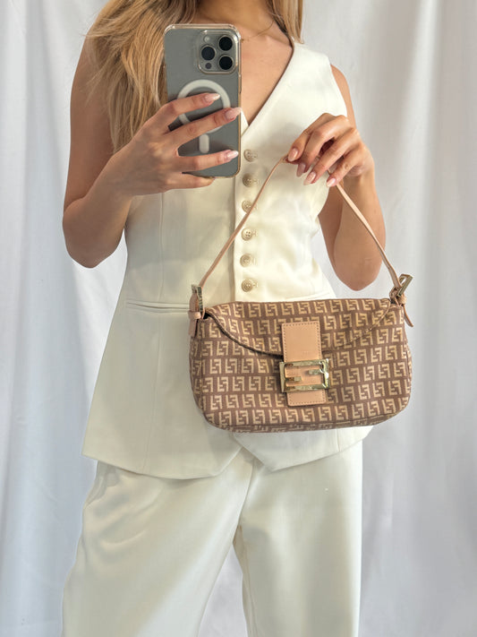 Fendi Vintage FF Corduroy Baguette Shoulder Bag