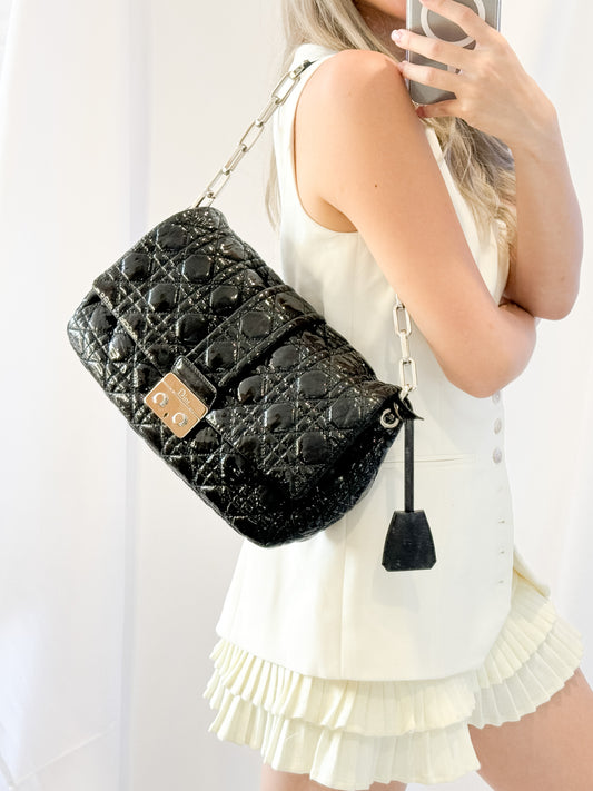 Christian Dior Black Cannage New Lock Flap Shoulder Bag