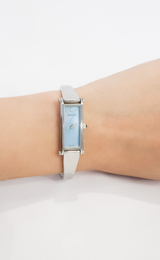 Gucci Blue Mother Of Pearl Horsebit Bangle Watch